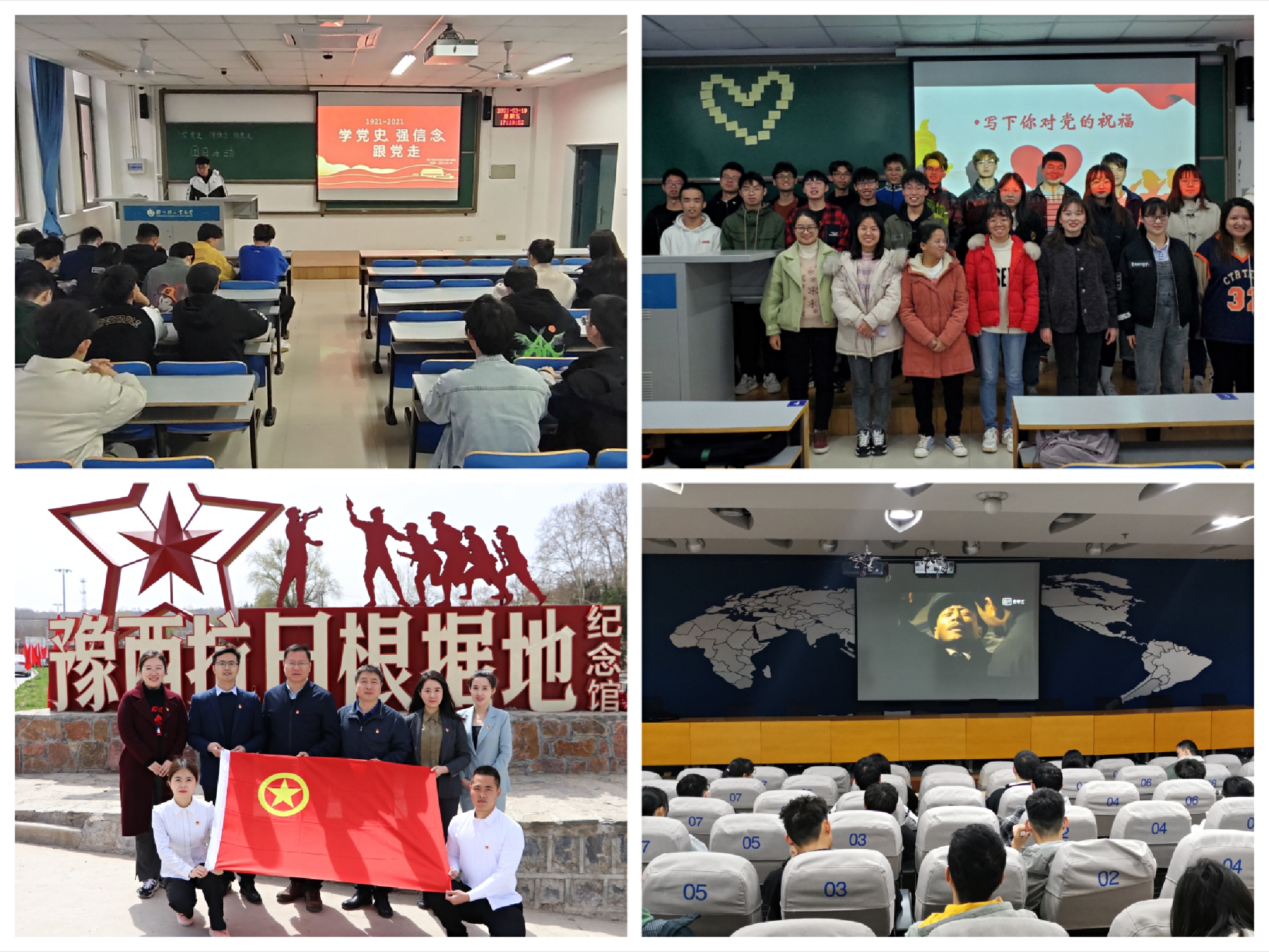 追寻红色记忆,坚定初心使命。深入开展“百年党史青年说”校内争霸赛,在全校青年学生中掀起学党史的热潮。青年学生前往中原豫西抗日纪念园、新密豫西抗日纪念馆、郑州市烈士陵园等地,开展寻访红色教育基地、光影故事重温历史等形式多样的活动,打卡革命旧址、遗址,学习中国共产党的精神谱系。校团委、电气信息工程学院、软件学院持续推出“青春献礼建党百年:我把红色家书读给你听”微信作品推送近20期,青年学生通过演讲、微电影等形式,生动诠释了中国共产党人精神的本质,带领同学们从党的非凡历程中感悟精神的力量。