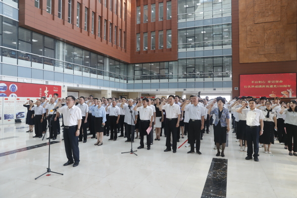 为激励和动员广大师生党员和群众更加紧密地团结在以习近平同志为核心的党中央周围,不忘初心、牢记使命,开拓奋进、攻坚克难,向着建设高水平轻工业大学目标迈进。在热烈庆祝中国共产党成立100周年之际,6月30日上午,我校在科学校区图书馆二楼大厅举行新党员入党宣誓和党员重温入党誓词活动。全体校领导,100名新党员代表、100名老党员代表和100名基层党组织书记代表参加了此次活动。活动由校长黄荣杰主持。