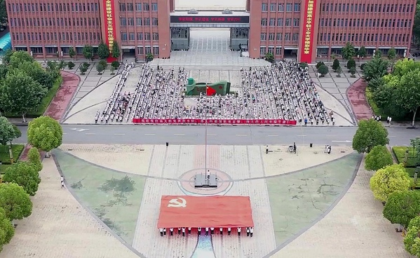 为庆祝建党百年,180名团员青年齐聚科学校区主教学楼前广场,以快闪的形式组成党旗方阵,青春向党礼赞、青春告白祖国,充分表达了新时代青年的拳拳赤子心、殷殷爱党情。