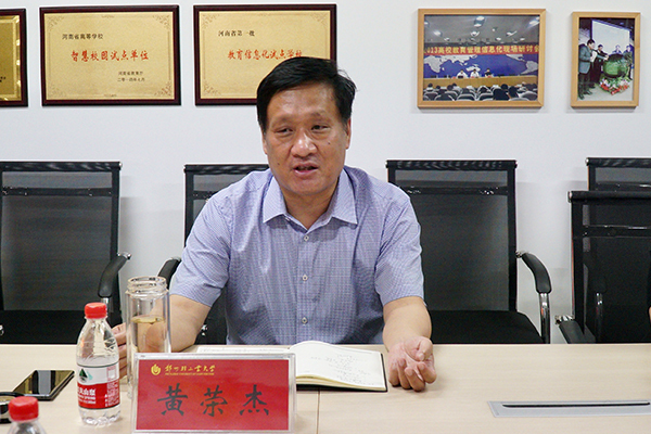 黄校长对信息化管理中心所做的工作给予充分肯定,对中心今后的工作提出了明确的要求。他指出,近年来,学校高度重视信息化建设,工作成效显著,走在了全省高校的前列,信息化工作已经从以前的网络基础服务提升到对教学科研战略支撑高度,希望信息化建设中心能够加强顶层设计,有序推进项目建设。一是要做好信息化建设“十四五”专项规划。从建设到应用再到管理,要一次规划、分步实施。二是要进一步深化教育教学信息化管理服务水平。突出育人特色,多为学生创造动手实践的机会,注重教学环境建设的受益面,做好学业预警和成绩分析工作,关注学生的学业发展;三是要加强智慧校园的建设应用。强化管理意识,抓好归口管理工作,做好信息化项目的规划、建设和监管,深化物联网基础设施建设。四是要重视网络维护和网络安全。网络意识形态安全的重要性日益凸显,要切实抓紧抓实网络安全工作,提高日常运转监控安全意识。五是要进一步加强中心队伍建设。加大人员配备和人才引进力度,更新、充实高层次、专业化人才队伍,不断提升人员的专业技能。六是要持续加强信息化建设经费的投入,积极引入社会资金加快学校信息化发展。加强智慧校园工程技术研究中心建设,争取获批省级平台,提高自身的研发能力。