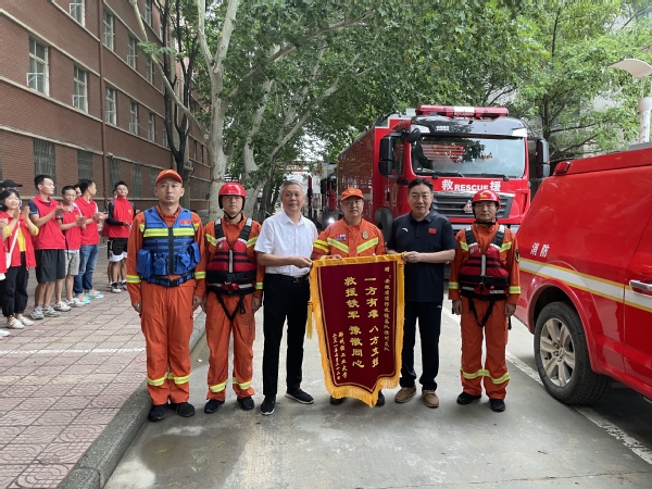 7月24日清晨,安徽省滁州市消防救援支队在完成救援任务后离开学校,奔赴下一个抢险救援地点。从7月21日下午开始,救援队在学校的紧密配合下,与学校救援人员勠力同心,并肩奋战三个日夜,抽出学校地下室积水5.3万立方米。