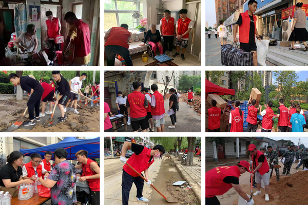 近期,罕见暴雨袭击河南各地,部分地区发生严重内涝,给人民群众的生命财产安全造成重大损失。学校为落实上级防汛救灾工作指示精神,进一步抓好防汛救灾工作,尽快排除隐患、恢复生活学习秩序,各单位积极组织分散在各地的师生进行防汛抗洪志愿服务。