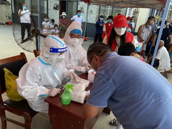 7月31日以来,河南多地实行全市全员核酸检测,争分夺秒与病毒“赛跑”。食品与生物工程学院学生林沛志、材料与化学工程学院学生姬珂、能源与动力工程学院学生侯雪晴、王创业等纷纷投身居住地核酸检测志愿服务中去,主动承担起后勤保障、志愿服务工作。在核酸检测现场,他们维持采样队伍秩序、引导群众保持安全距离、帮助老人登记核酸检测二维码信息,耐心讲解核酸检测流程,全力协助检测工作快速、有序推进。姬珂说:“志愿实践服务工作有时一忙就忙到了夜里两三点,虽然很累,但让我感受到了满满的自豪感与成就感。”