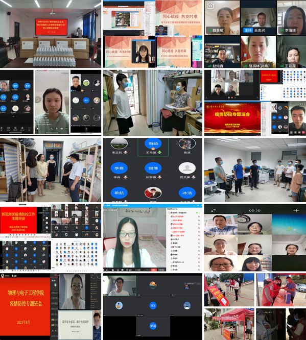 电气信息工程学院、食品与生物工程学院、艺术设计学院、国际教育学院、外国语学院、数学与信息科学学院、物理与电子工程学院、体育学院、能源与动力工程学院、建筑环境工程学院、信息化管理中心、附属学校等单位召开疫情防控线上会议、专题班会,在会议上各单位及时传达了河南省委、省教育厅及学校疫情防控工作专班会议精神,为居家防疫的师生解读了最新防控要求和相关知识。