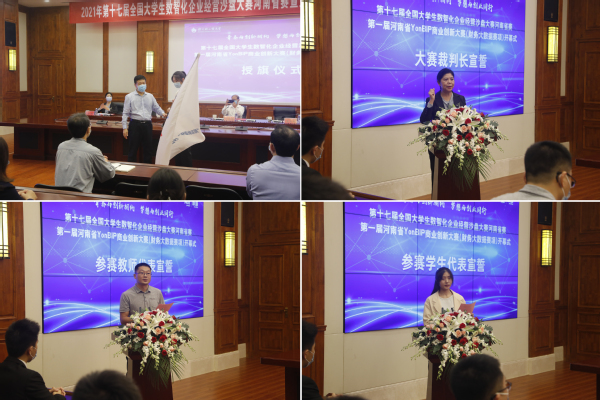 校党委书记、校长黄荣杰向参赛学生代表授旗大赛裁判长、参赛教师代表、参赛学生代表宣誓