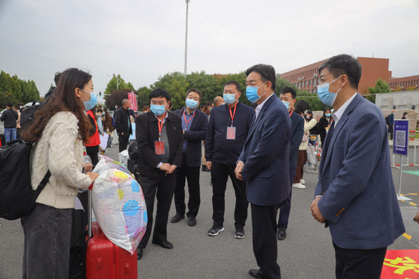 校领导与报到新生亲切交谈