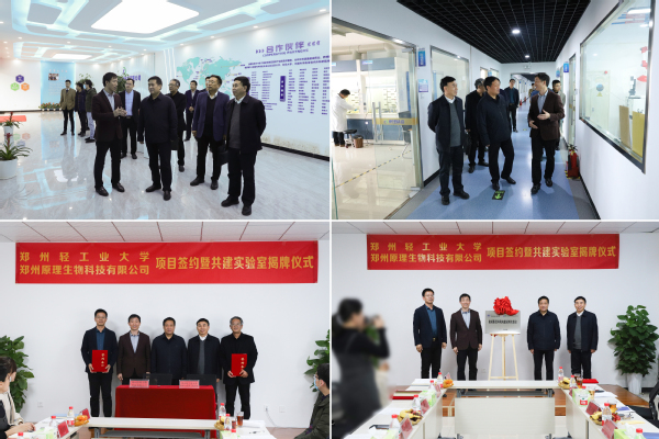 黄荣杰、武小军、方少明、蒋德刚共同为“极端服役环境功能材料实验室”揭牌,并见证了“18新利直播 材料与化学工程学院和郑州原理生物科技有限公司合作框架协议”签订仪式。(通讯员:袁杰)