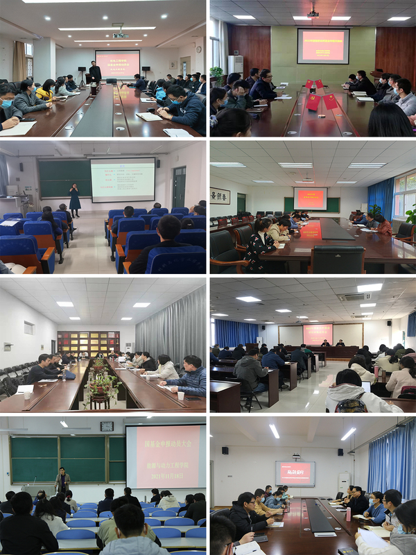 为了做好2022年度国家自然科学基金项目申报工作,进一步提升我校国基金申报质量,按照学校2022年度国基金申报总体部署及工作安排,近期,电气信息工程学院、机电工程学院、食品与生物工程学院、材料与化学工程学院、计算机与通信工程学院、软件学院、数学与信息科学学院、物理与电子工程学院、能源与动力工程学院、建筑环境工程学院分别召开了2022年度国基金申报动员会。副校长方少明和科技处负责同志参加了部分学院的动员会。
