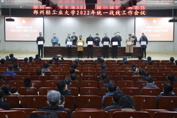 会上表彰了2020-2021年度学校统一战线(工作)先进集体、先进个人。校纪委书记张晓根宣读表彰决定,校领导为先进集体、先进个人颁发了奖牌、证书。校党委副书记张志坚对2021年统一战线工作进行了回顾总结,并对2022年统一战线工作进行了安排部署。