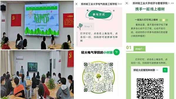 校团委和各学院通过微信公众号、微博、QQ群等媒介,向青年有关生态文明的微视频、动漫作品,引导广大学子树立绿色发展理念。电气信息工程学院、经济与管理学院、政法学院通过主题团日活动的形式,号召学生线上种植一棵虚拟树,通过步行等行为,减少相应碳排放量,体验“云植树”的乐趣,撒播“绿色希望”。