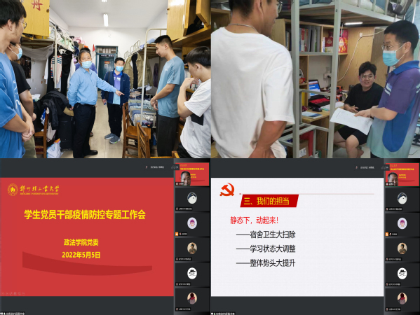 不负时光,努力不辍。虽然本轮疫情让这个春天变得不同寻常,但同学们学习热忱丝毫不减、追求健康生活的执着没有改变,积极主动弥补疫情造成的不便,服从大局、严格自律、攻坚克难、共抗疫情。“云课堂”成为同学们学习生活的主旋律,以宿舍为单位开展的健身活动、手工制作等为防疫生活增添了缤纷色彩,展现了政法学子乐观阳光、蓬勃昂扬的精神状态。