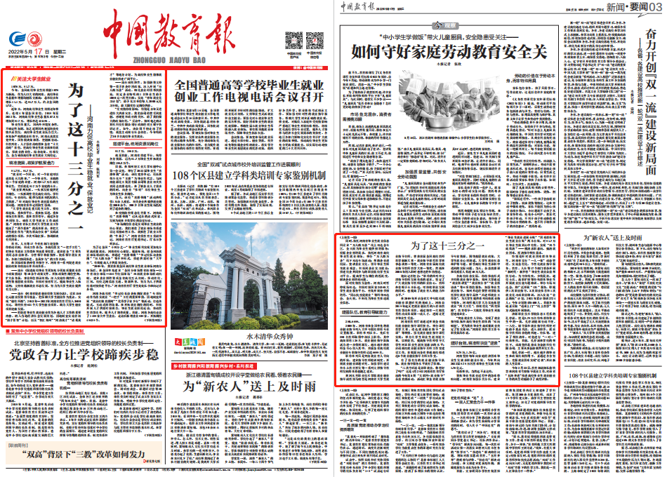 5月17日,中国教育报头版头题报道河南:为了这十三分之一!其中,我校书记校长直播带岗活动被作为案例介绍。原文如下: