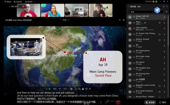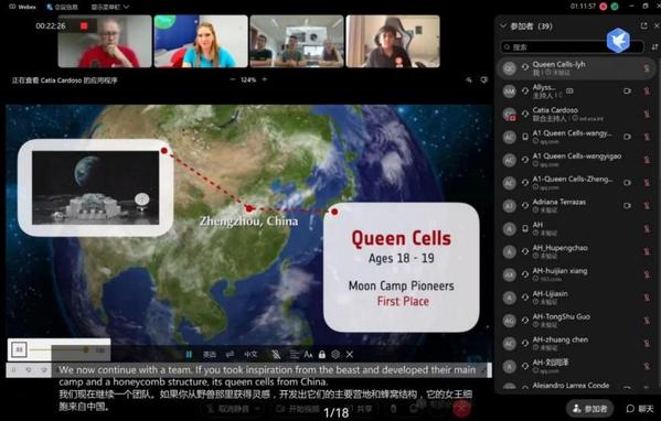 2022年6月9日,两支团队受邀参加“MOON CAMP 2022 WEBINAR”,与欧洲宇航局宇航员进行在线对话交流,并和全球十多个国家的代表同步与欧洲宇航局宇航员、联盟飞行器发射飞行工程师,现任ESA国际空间站项目经理的Frank de Winne进行连线研讨。研讨会以线上网络直播会的形式召开,会议邀请亚太、欧洲和拉丁美洲等国家的青少年进行分享和交流。
