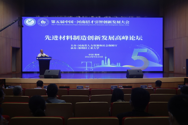 9月24日,由河南省人力资源和社会保障厅主办,我校承办的“先进材料制造创新发展”高峰论坛在郑州国际会展中心成功举行。此次高峰论坛是第五届中国·河南招才引智创新发展大会五个高峰论坛之一,旨在锚定“两个确保”,深化落实以“创新驱动、科教兴省、人才强省”为首的“十大战略”,助力河南省建设国家创新高地和全国重要人才中心。来自国内外先进材料制造行业顶尖的院士、长江学者、国家杰青等13名专家学者应邀参加论坛活动,共同探讨先进材料制造创新发展,提高科技创新能力和高端产业引领能力,推动制造业高质量发展。