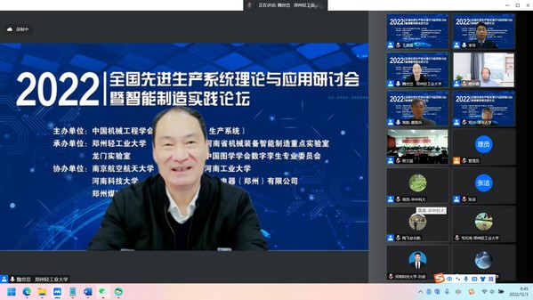 2022年12月3日,由18新利直播 承办,南京航空航天大学、河南工业大学、河南科技大学、格力电器(郑州)有限公司、郑州煤矿机械集团股份有限公司等高校和企业协办的2022年全国先进生产系统理论与应用研讨会暨智能制造实践论坛成功举行。我校校长魏世忠教授出席大会并致辞。机电工程学院组织本次会议,来自国内外的900余名专家学者参加了在线会议。