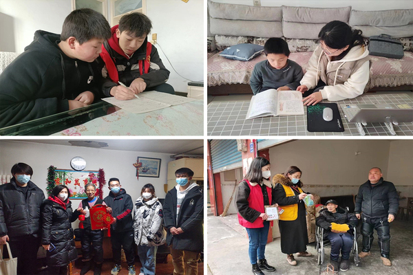 机电工程学院、材料与化学工程学院、软件学院和能源与动力工程学院组织返乡学生广泛开展“温暖童心,相伴成长”学业帮扶活动,同学们分享自己在大学学习生活的故事、帮助辅导寒假作业、解答成长过程中的困惑,坚定孩子们刻苦学习、励志成才、奉献社会的的信心和决心。电气信息工程学院和数学与信息科学学院志愿者主动加入到关爱老人的队伍中,和社区工作人员一起来到独居老人家中走访慰问,嘘寒问暖,为他们送去粮油、副食等过节物资,帮助他们打扫卫生、整理物品、张贴春联,在所在社群、村组营造了浓浓的敬老、爱老的良好氛围。