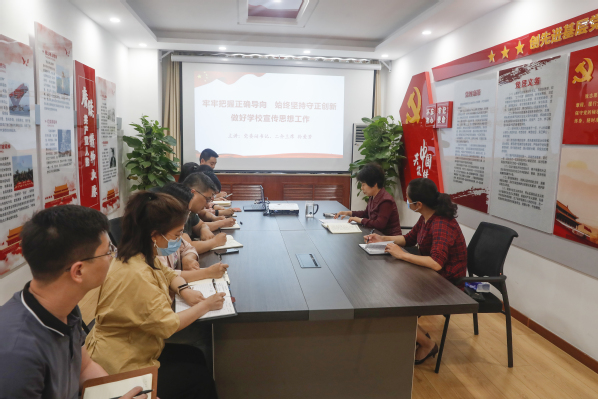 孙爱芳以《牢牢把握正确导向,始终坚持守正创新做好学校宣传思想工作》为题,结合自身学习心得,联系学校实际,从“在识变应变求变中牢牢把握正确政治方向、学校宣传思想工作要守正创新、构建学校宣传思想工作大格局、学校宣传思想战线的使命担当”四个方面,就全面学习领会习近平新时代中国特色社会主义思想,全力做好学校宣传思想工作做了深入阐述。