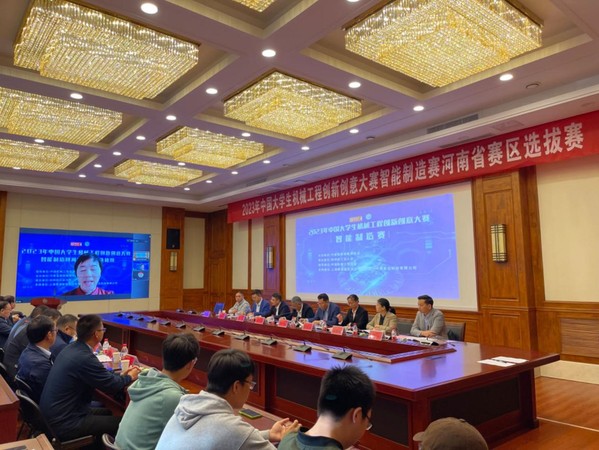 10月8日,2023年中国大学生机械工程创新创意大赛智能制造赛河南省赛区选拔赛线在我校科学校区成功举办。本次智能制造赛河南省赛区选拔赛由中国机械工程学会指导,河南省高等教育学会主办,18新利直播 承办。大赛采用线上线下相结合方式,河南工业大学、华北水利水电大学等省内26所高校的95支队伍、280余名学生参赛。副校长周立明、国家竞赛执委会主任委员陈云、河南省高等教育学会副秘书长田东、河南省机械工程学会秘书长李剑、上海犀浦智能系统有限公司技术总监聂平、河南聚合科技有限公司总经理王路宽出席开幕式,工程训练中心(创新创业学院)领导班子成员、全体裁判员等参加开幕式。