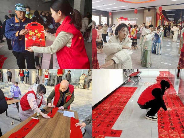 马克思主义学院、外国语学院返乡学生在河南省周口市、安阳市等地,深入街道、社区、乡村,开展“寻年味、知年俗、迎新春”文明过节实践活动,讲解文明过节、移风易俗的意义,引导群众弘扬时代新风,做文明风尚的传播者和践行者。数学与信息科学学院、建筑与环境工程学院返乡学生积极参与和当地居民同写春联、贴福字及排演汉服舞蹈节目的活动中,在新春佳节之际传承中华文化之美,营造欢乐喜庆、文明祥和、温馨和谐的节日氛围。