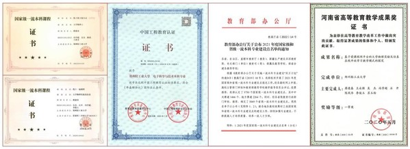 持续深化教育教学改革,全面提升人才培养质量,专业建设成绩显著,2个专业获批国家级一流本科专业建设点,2个专业通过教育部工程教育专业认证。课程建设成果丰硕,获批国家级一流本科课程2门,省级一流本科课程8门,省级精品在线开放课程4门,省级课程思政样板课程2门。教学研究持续深化,主持省级教研项目5项,教育部产学合作协同育人项目14项,获得河南省教学成果一等奖1项。人才培养质量显著提高,学生在“挑战杯”“互联网+”“全国大学生光电设计竞赛”等创新创业大赛和学科竞赛中获国家级奖项27项,省部级奖项165项。毕业生考研率显著提升,2023年达到51.5%,连续3年获评学校毕业生就业创业工作先进集体,获评校级高质量充分就业示范院。