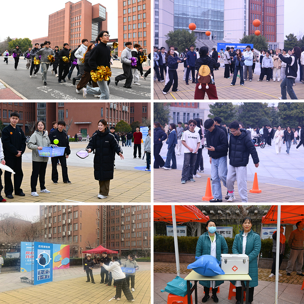 开幕式后,校园欢乐环跑活动鸣哨开跑。在校领导、全国越野跑冠军、校体育队教练等的带领下,师生从图书馆南门有序出发,沿着校园主干道开启了活力满满的校园环跑之旅。随后,“健体悦心”趣味挑战赛火热开启,挑战赛精心设置了匹克球击准、腰旗橄榄球投掷、四角传球等多个趣味项目,旨在帮助师生提高自信心、专注力、协调力等能力。校领导与师生踊跃参与,个人项目中你追我赶、全力以赴,团队配合中默契传递、欢声不断。现场气氛紧张与欢乐交织,竞技与情谊共融,充分展现了我校师生积极向上、团结拼搏的良好精神风貌。