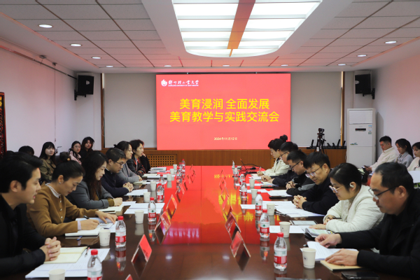 会上,我校宣传部相关负责同志对河南大学文学院代表团的到来表示热烈欢迎,并简要介绍了我校的基本情况和美育工作的开展情况。艺术教育中心相关负责同志向与会人员介绍了我校美育工作的实施现状,重点展示了我校在美育课程建设、实践活动组织和教学成果等方面的经验与成效。梅克尔工作室负责人分享了跨学科美育的实践经验,尤其是如何通过跨领域合作推动美育育人的经验与成效。