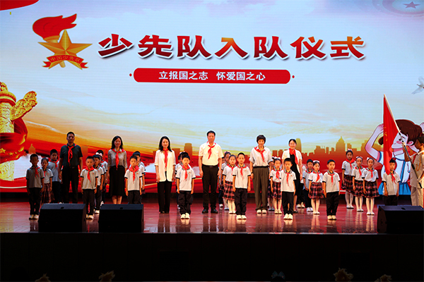 鲜艳的红领巾是五星红旗的一角,为铭记入队这一庄严时刻,附属学校为一年级同学举行入队仪式,参会领导及老队员代表为被批准加入中国少年先锋队的新队员佩戴红领巾。全体少先队员举拳呼号“时刻准备着!”,响亮有力的呼号,表达了少先队员牢记党的教导、争做强国少年的坚定决心。