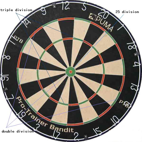 yer is to reach zero by subtracting the amount they score from the amount they had left,but final throwing must be double division. And the first to reduce his/her score to zero wins.