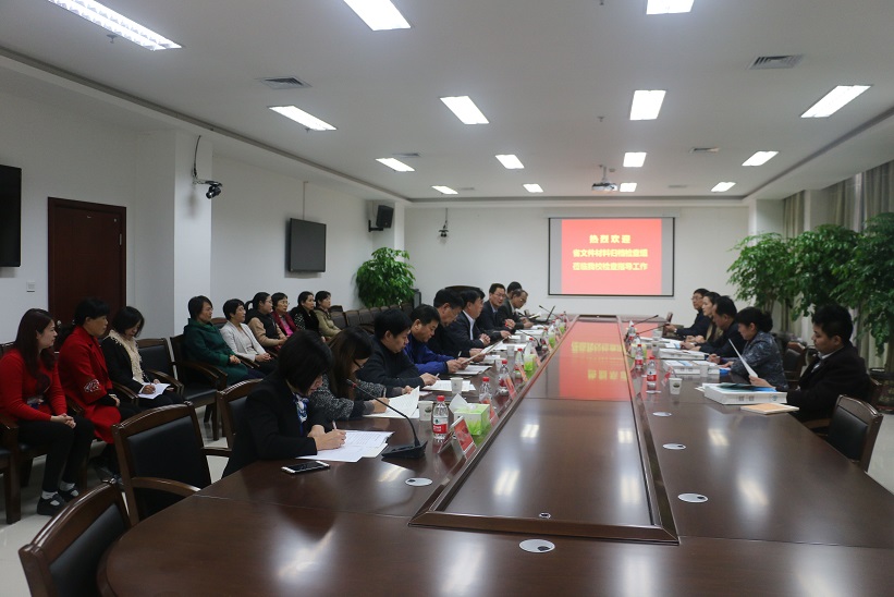 检查组首先参观了学校新建的教学科研特色成果展厅。随后在逸夫图书馆二楼会议室召开检查工作汇报会。校长赵卫东、副校长方少明,教务处、科技处、基建处、国资处、设备处等相关处室负责人以及档案馆全体工作人员和部分部门档案员参加了汇报会,会议由图书馆直属支部蔡丽萍书记主持。