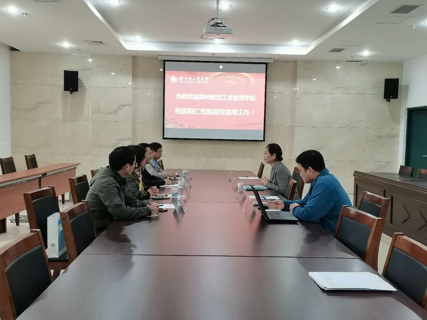 10月30日下午,郑州航空工业管理学院档案馆馆长沙全友一行四人来校考察学习,就我校建设全国示范数字档案室的经验进行交流。双方在档案馆阅档室举行了座谈会。馆长苏玉玲和相关工作人员参加座谈。