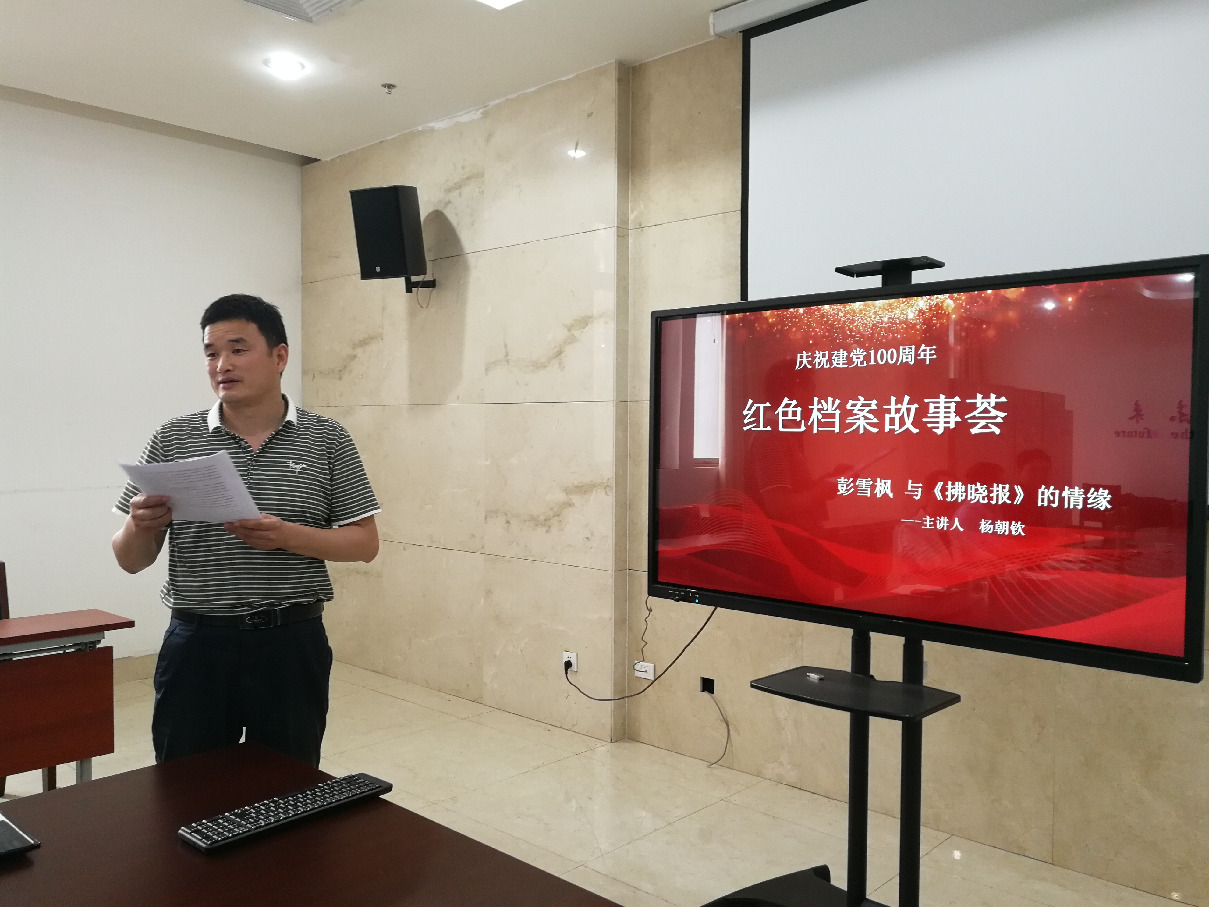 第二环节为党史学习体会分享环节。会上以建党一百周年 “红色档案故事荟”为主题,每个党员都分享了自己印象深刻的红色档案故事。有“一枚印章——新中国档案事业的开创者曾三的故事”、“孩儿立志出乡关——毛泽东改造中国与世界的开端”、“朱德以红军总司令名义发布的《中国工农红军布告》”、“赵一曼的红色家书——给宁儿的信”、“彭雪枫 与《拂晓报》的情缘”、“生日当晚,周恩来写下《我的修养要则》”、“竹竿上镌刻的民心”等题目。通过对一件件红色档案的故事分享,大家深切理解了共产党人的理想信念和初心使命,透过红色档案背后震撼心灵的故事,大家深切理解了“了解历史,才能看得远;永葆初心,才能走得远”的真正意义。