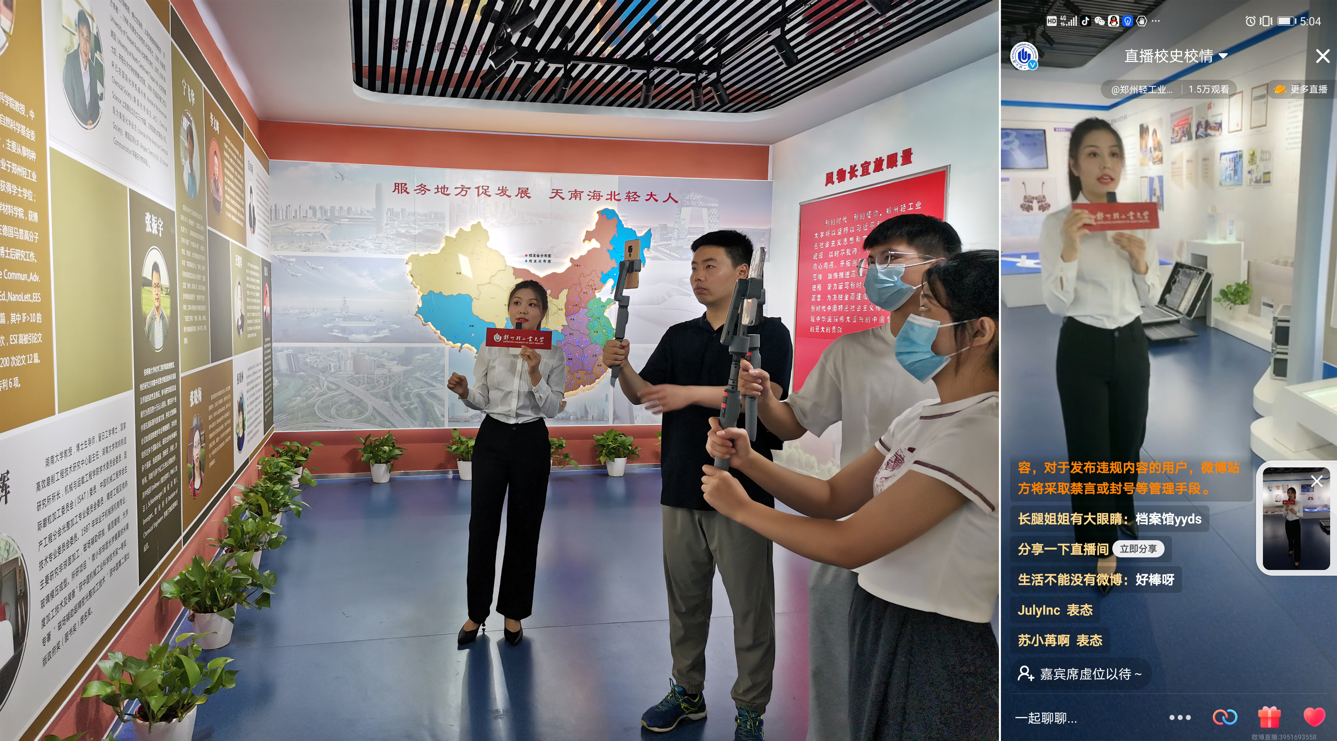 9月23日下午,面向2021级全体新生的“你的轻大”校史校情讲解直播活动在学校特色成果展厅顺利举行,广大新生和其他关注学校发展的师生校友、各界网友通过学校官方微博、官方微信视频号、官方抖音等平台参与了直播活动。活动由党委宣传部和档案馆联合组织开展。