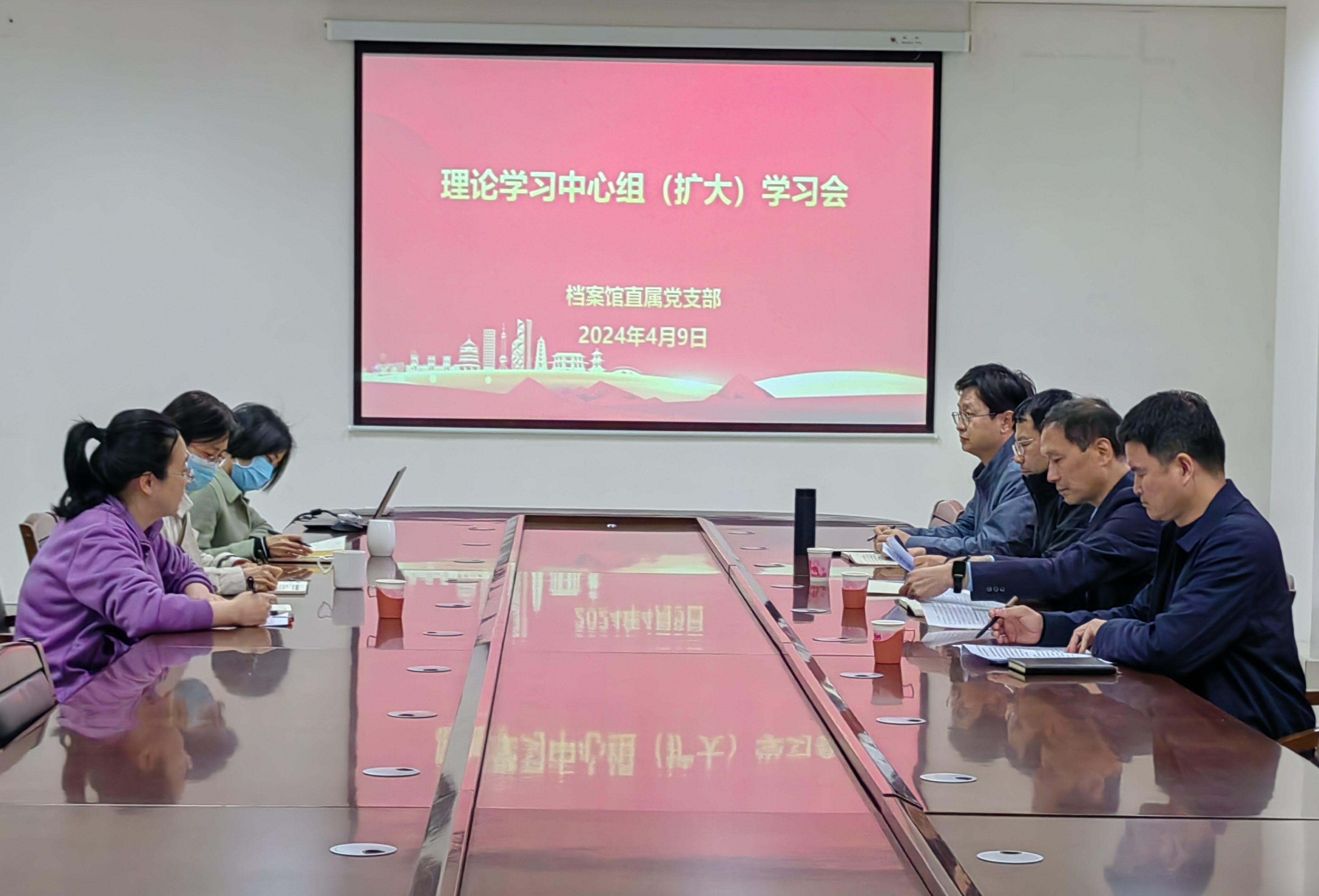 4月9日上午,档案馆直属党支部在科学校区逸夫图书馆第一会议室召开理论学习中心组(扩大)学习会。中心组成员和科级干部参加了学习。会议由直属党支部书记罗楚新主持。