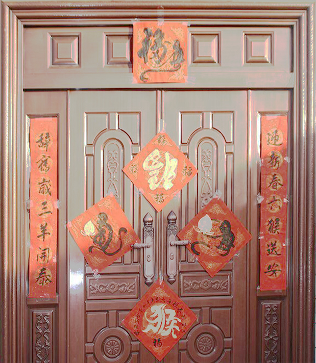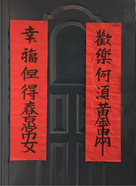 在中国历史文明中,庆祝春节的习俗很多,至今在民间保存最广的习俗当是贴春联。贴春联,是民间庆祝春节的第一件事情。每当春节将近的时候,家家户户都在大门两边贴上崭新的春联,红底黑字,稳重而鲜艳,吉祥且喜庆。