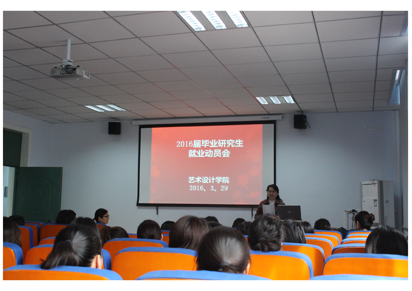2016年3月29日下午,艺术设计学院在东四楼301教室召开2016届毕业研究生就业指导动员会。学院党总支副书记张莉老师、专职研究生辅导员唐丹丹老师以及2016届毕业研究生参加了会议。