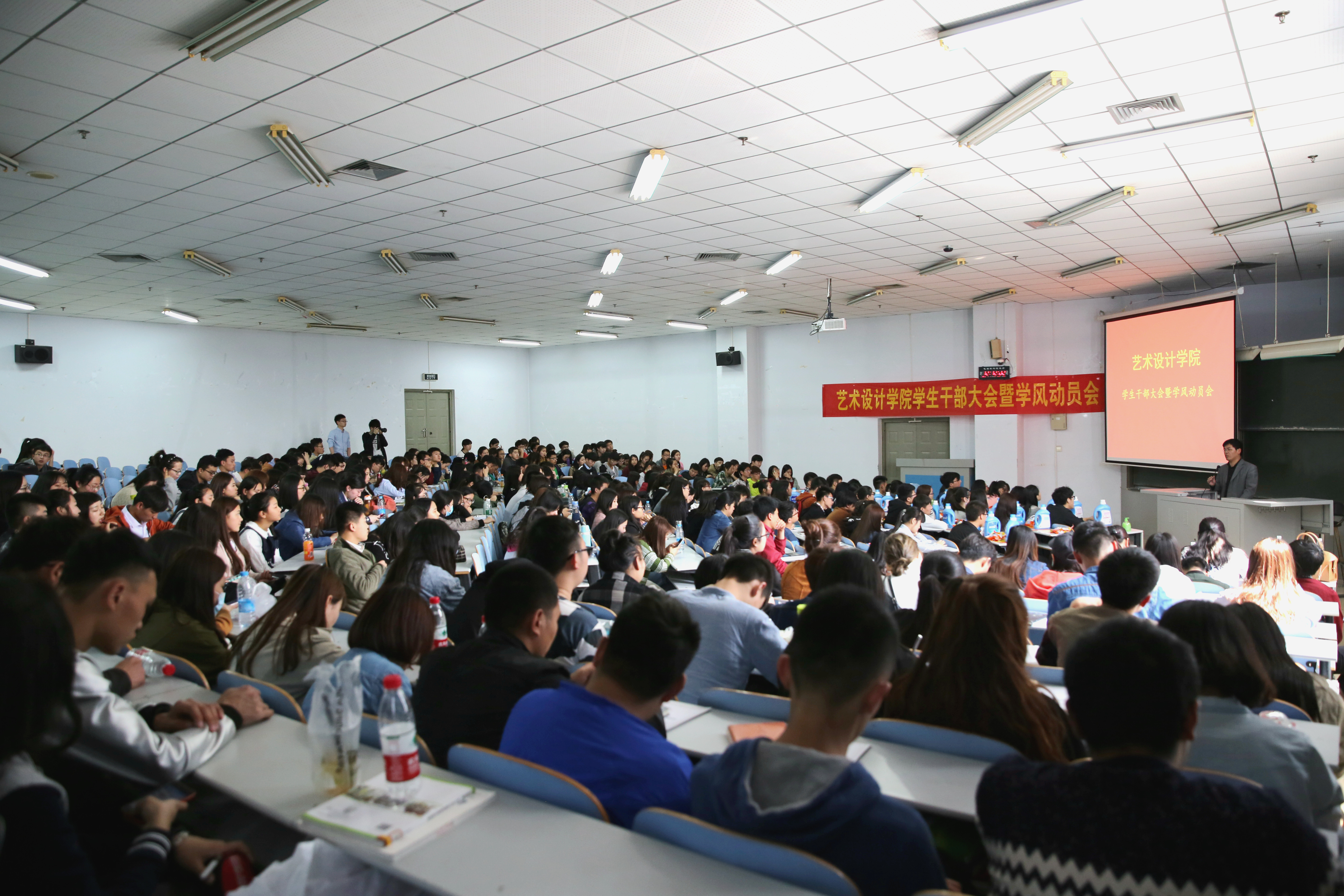 按照学校“正学风聚能量”学风建设活动精神,为了进一步塑造良好学习风气,2016年3月31日中午,艺术设计学院在教三楼202教室召开学生干部大会暨学风动员会。大会由学院分团委书记任红印老师主持。党总支副书记张莉老师、各年级辅导员老师、本科一二三级以及研究生所有学生干部参加了会议。