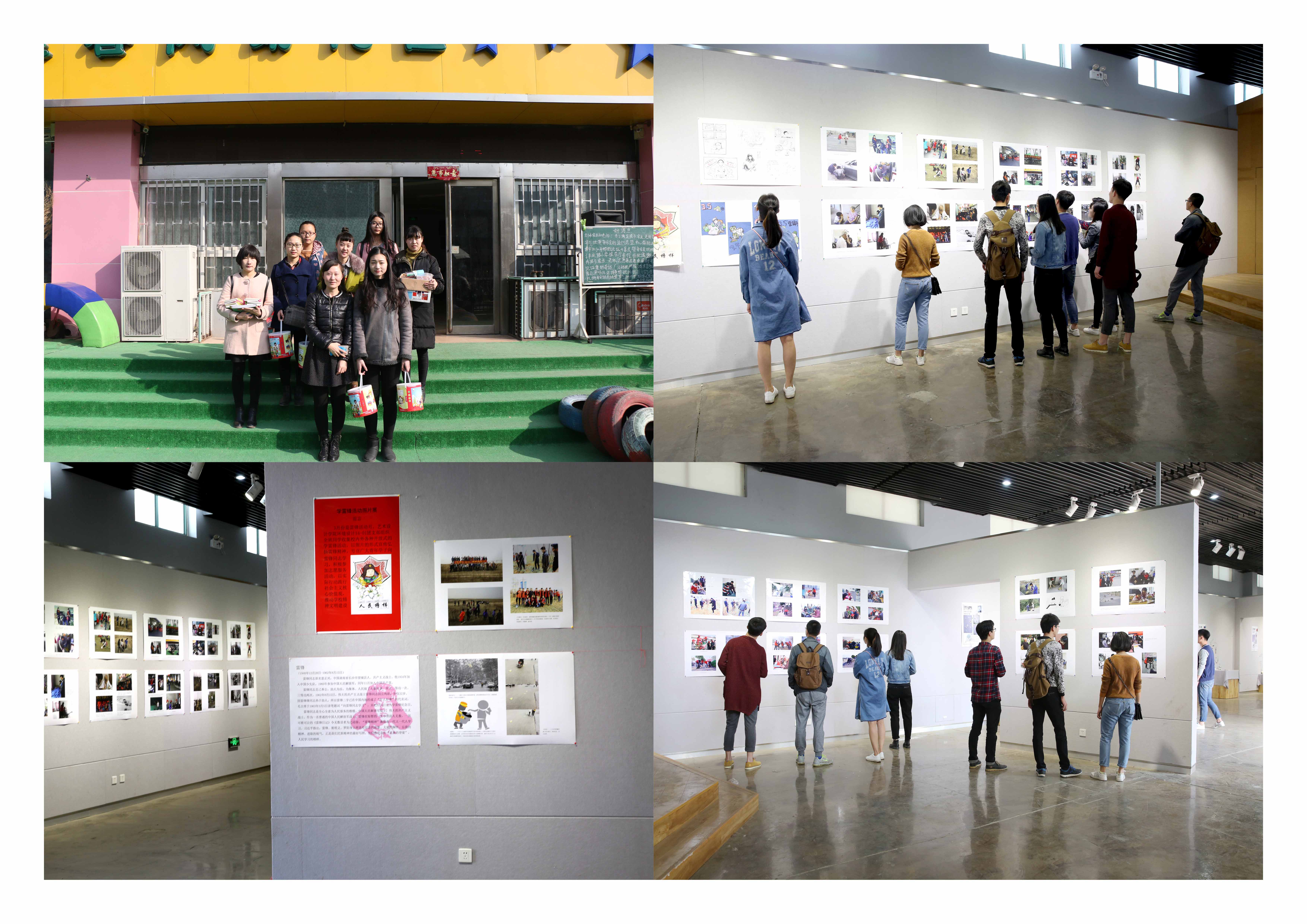 活动六:2016年3月29日,艺术设计学院在东四楼南展厅举办学雷锋活动图片展。此次图片展为期3天,共展出108幅图片。图片以记录“生活中的雷锋”为主题,全部由2014级环境设计班的同学在校内网用了近一个月收集和拍摄。一张张图片所记录的一位位可亲、可敬、可爱的现代雷锋形象,吸引着众多同学驻足观看。