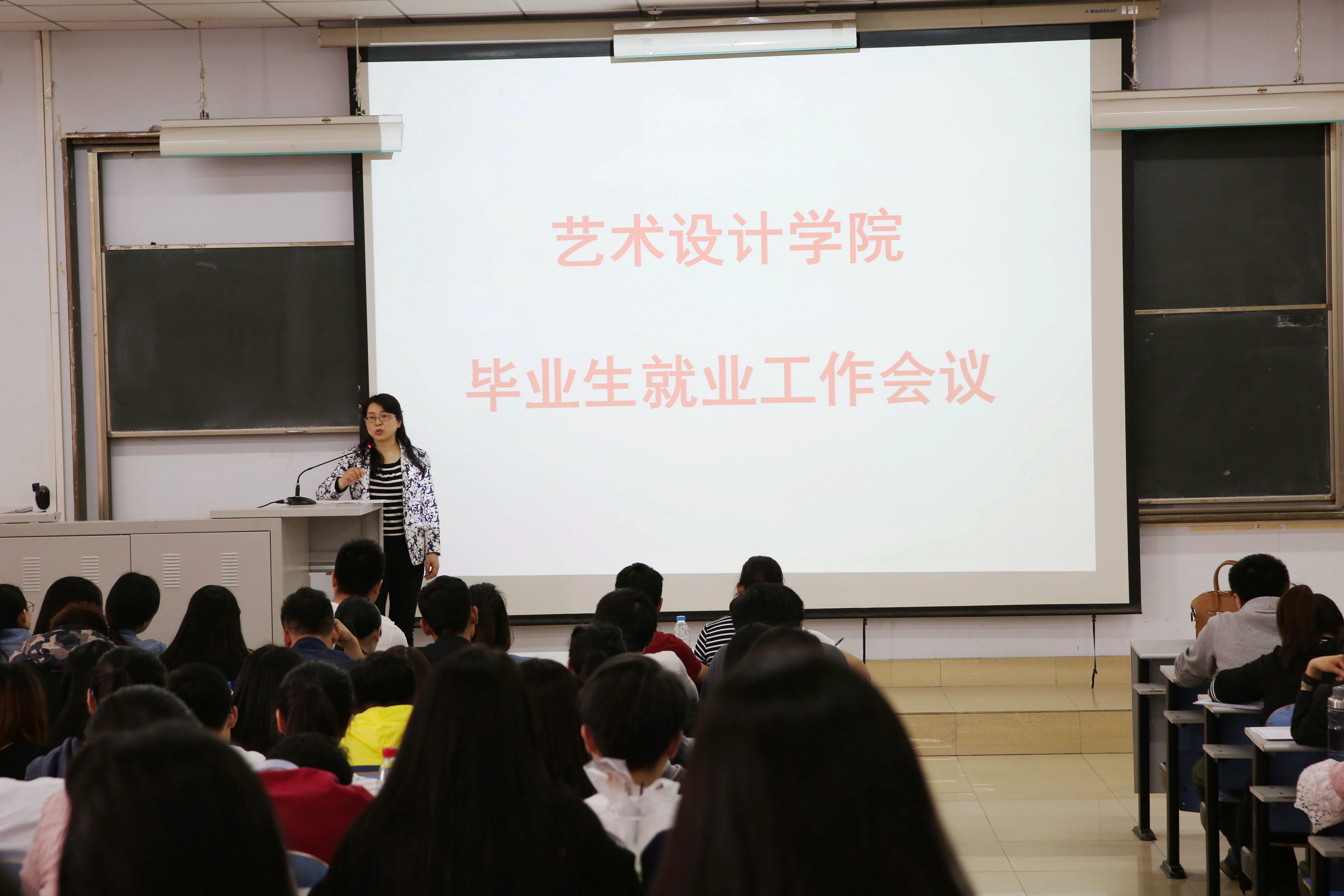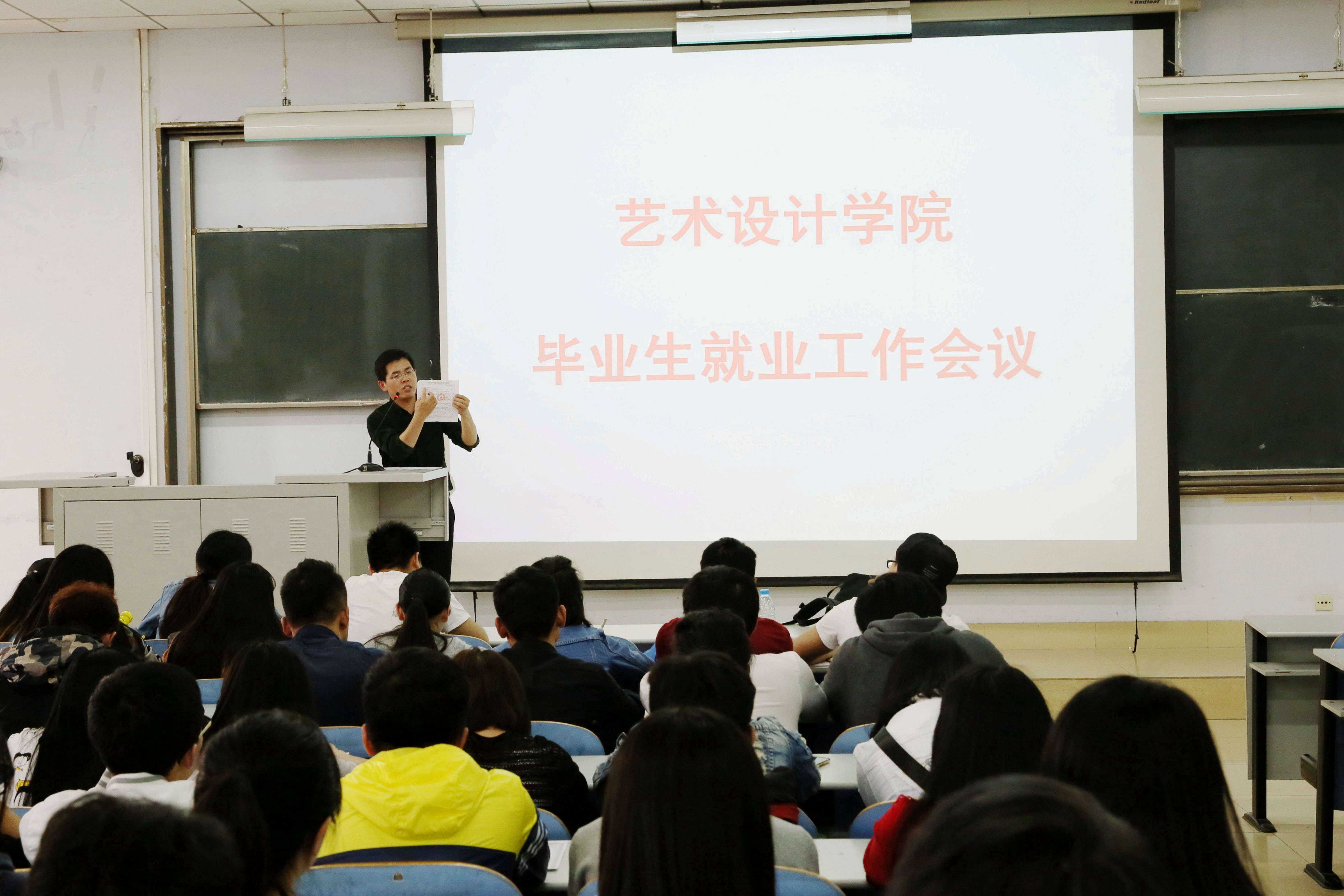 4月1日下午,艺术设计学院在教三楼302教室召开了2016届毕业生就业工作会议,党总支副书记张莉、分管就业工作的霍庆媛老师及全体2016届毕业生参加了会议,会议由分团委书记任红印主持。