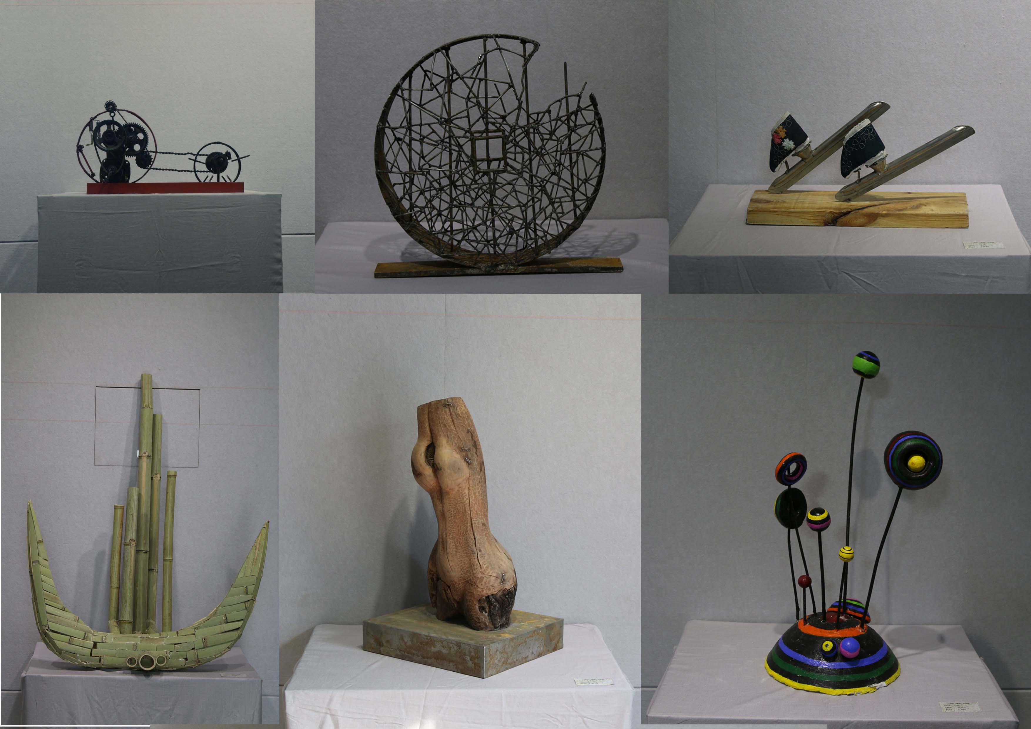 此次材料雕塑展览共展出作品三十余件,选自2013级、2014级雕塑专业学生课堂作业,分别由王洪坤、刁军翔、强永根三位老师指导完成。涵盖了木雕、根雕、金属雕塑、玻璃钢雕塑以及由布、线、纸、羽毛等软材料完成的雕塑。作品形式新颖、造型独特,展示了学生们从自我内心感受出发,探究材料特性与形式表达的关系,并对雕塑语言进行多角度挖掘的过程。通过此次展览,激发了雕塑专业学生的创作热情,提高了大家的创新意识。希望能为校园文化建设和雕塑艺术的传播做出应有的贡献。