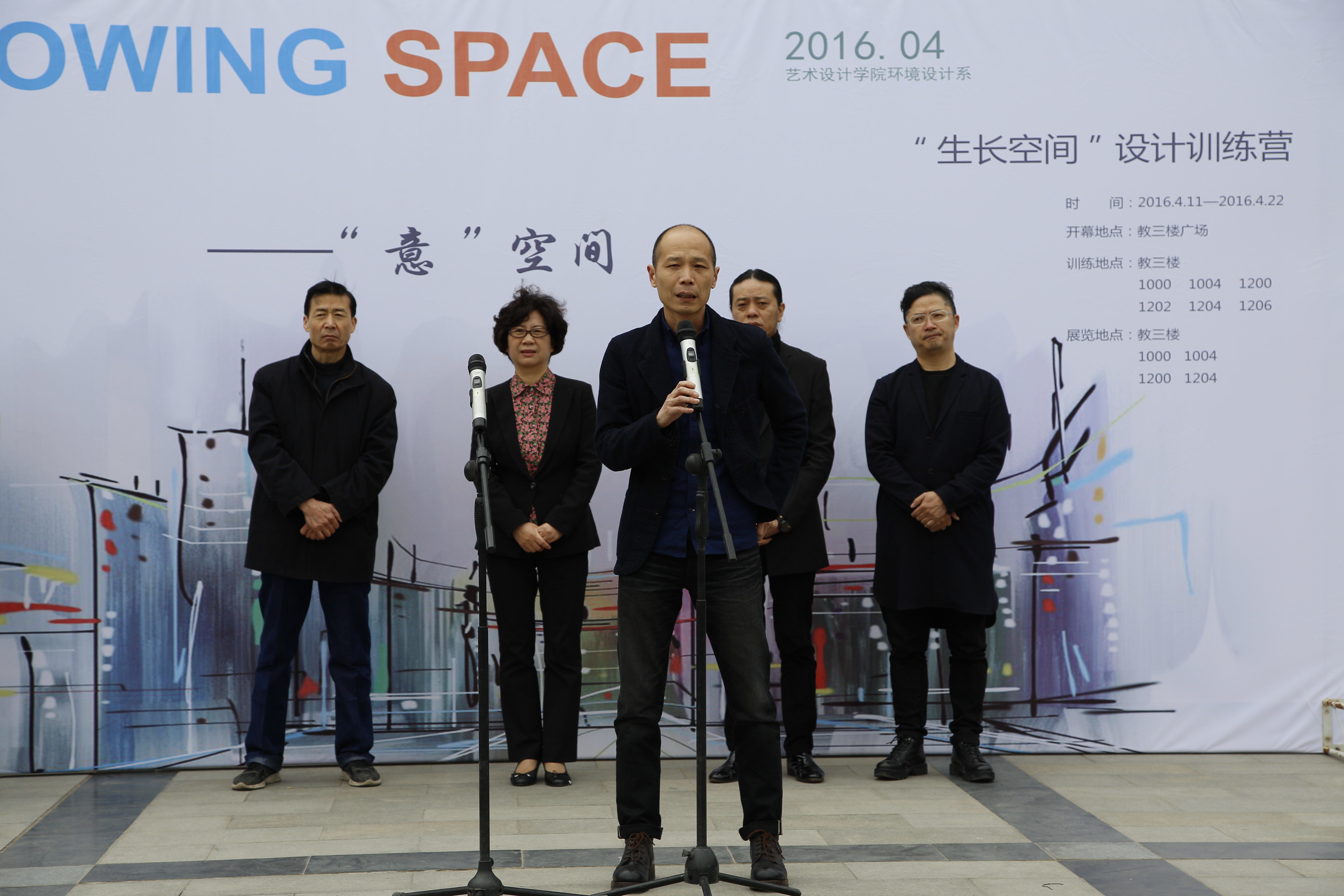 4月11日上午,艺术设计学院环境设计系第四届“生长空间”设计训练营在教三楼前广场启动。副校长王新杰教授、教务处阮世敏副处长、艺术设计学院院长曹阳教授、曹瑞林教授及部分企业嘉宾郑雁冰、张振刚、赵占英等领导老师出席了启动仪式。此次活动由环境设计系主任张倩老师主持,环境设计系全体教师及学生约400余人参加了启动仪式。
