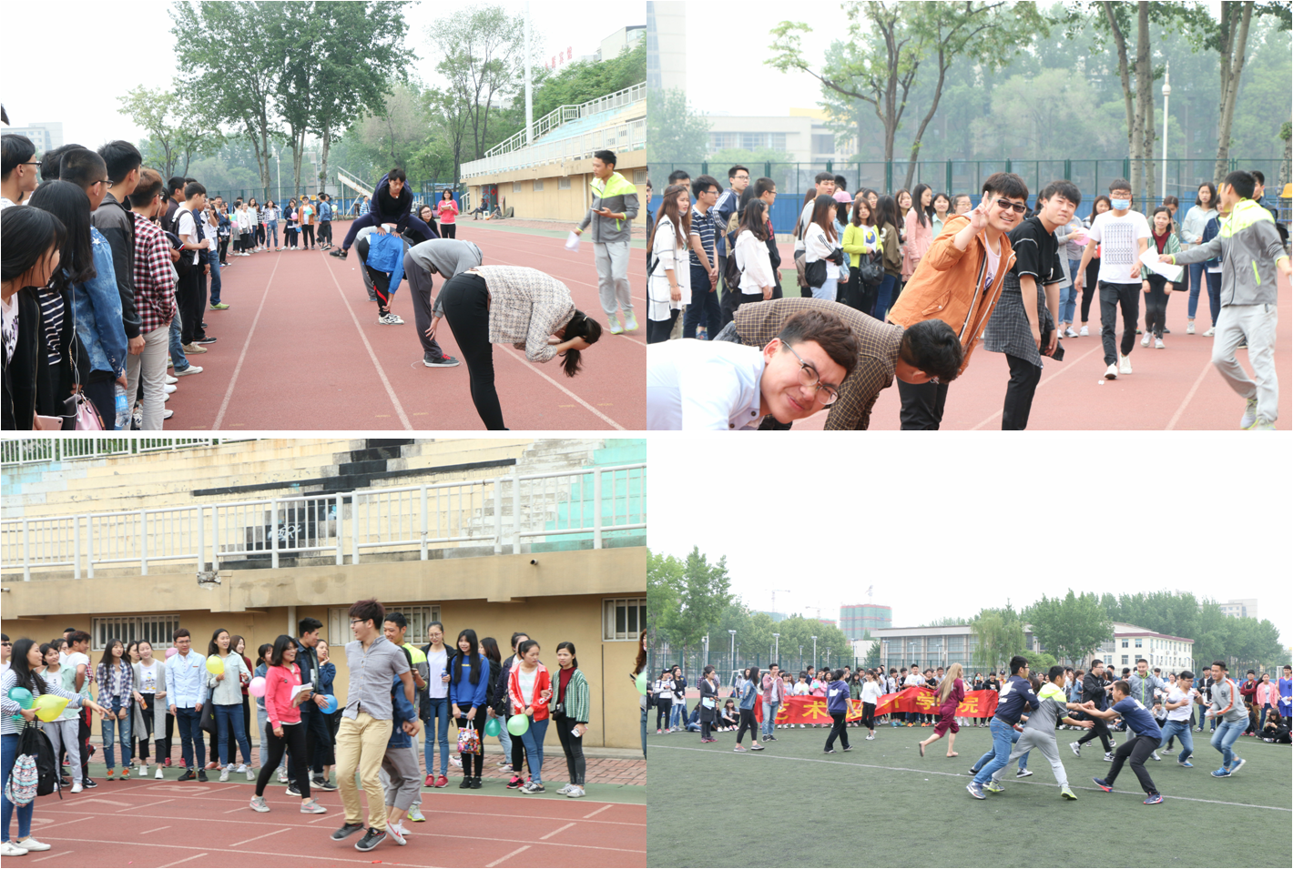 活动共设有跳大绳、翻山越岭、背夹气球,五人四脚和撕名牌五个比赛项目。比赛过程中同学们都表现出了很高的积极性,几乎每个人都参与到了活动当中。场上各团队精龙活虎,配合默契,场下加油助威声此起彼伏,络绎不绝。整个操场活力四射,朝气蓬勃。最后,任老师对活动进行了总结,赞扬了大家在比赛中表现出来的争胜意识和团队合作精神。