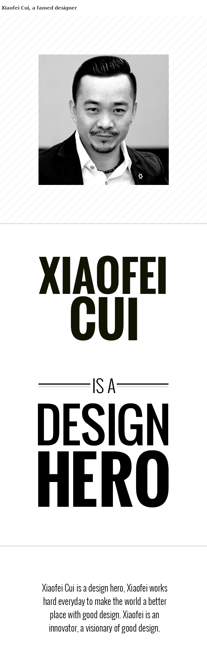 崔晓飞老师毕业于英国纽卡斯尔诺森比亚大学设计学院(与苹果公司前任设计总监乔纳森艾维爵士毕业于同一所设计院校),文学硕士学位。1993年开始其职业设计师生涯,涉及领域广泛,包括了平面设计、室内设计、展示设计和产品设计,自2009年起任教于郑州轻工业学院艺术设计学院工业设计系,并长期担任英国爱丁堡龙比亚大学产品设计专业国际交流生课程群主管。与企业合作完成多项重要设计课题,个人及指导学生荣获国际知名设计奖20多项,包括全球最高设计荣誉A'设计金奖,IF,红点,雷克萨斯,博朗,CDN中国汽车设计大赛等。