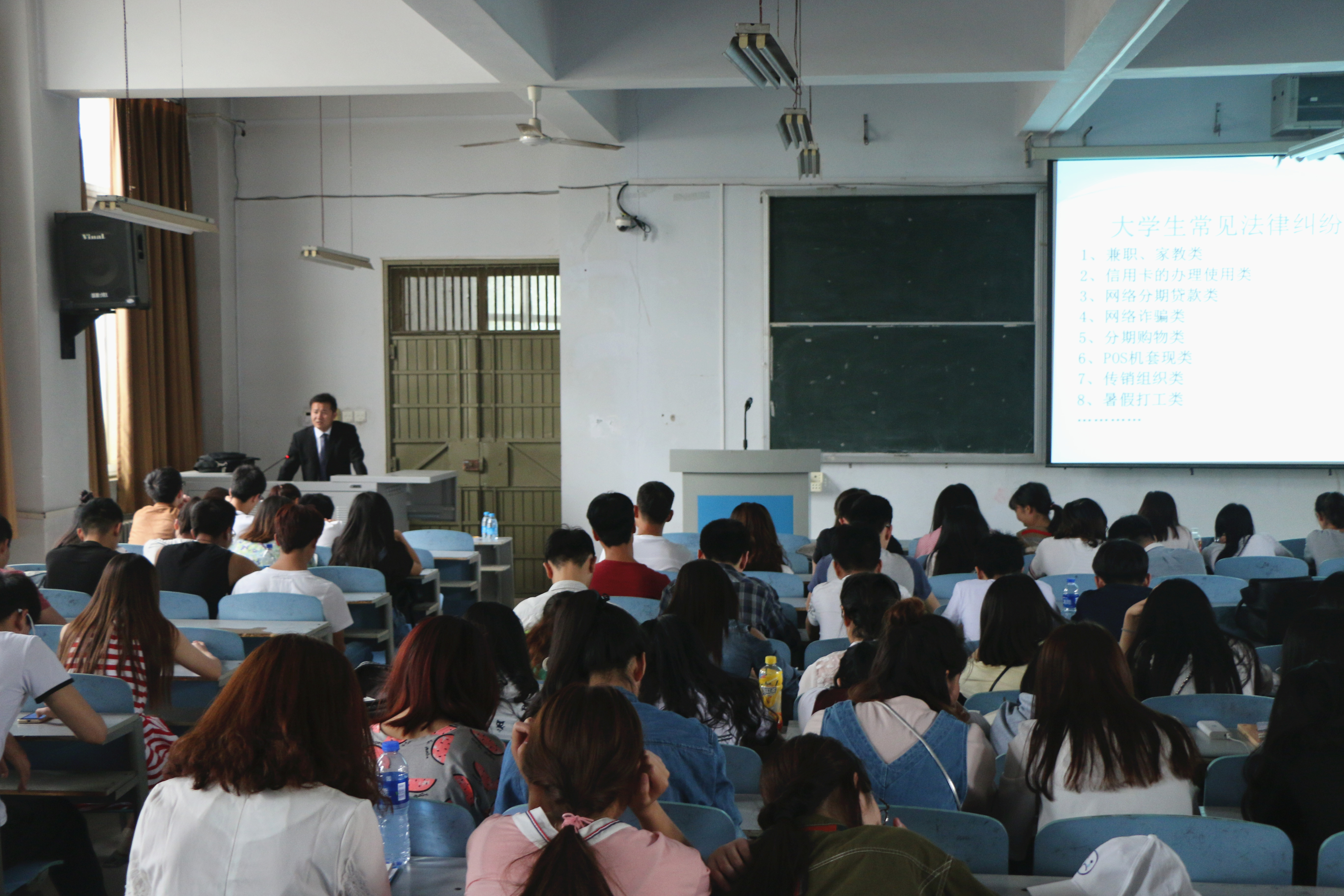 本次活动特别邀请了中国龙翔律师联盟创始人、河南庆翔律师事务所创始人王庆响律师对同学们进行法制安全教育。王律师有多年的律师从业经历,经验丰富,才思敏锐,讲座中结合大学生学习生活的各个方面为大家解读身边的法律,以生动鲜活的案例入手为大家详述了大学生常见的法律纠纷及风险,如兼职家教类、信用卡办理类、网络诈骗类、就业创业类等等,用事例敲响守法用法警钟。王律师还现场与同学们进行互动,对同学们日常生活中遇到的一些法律维权方面的疑问给予了专业的解答。