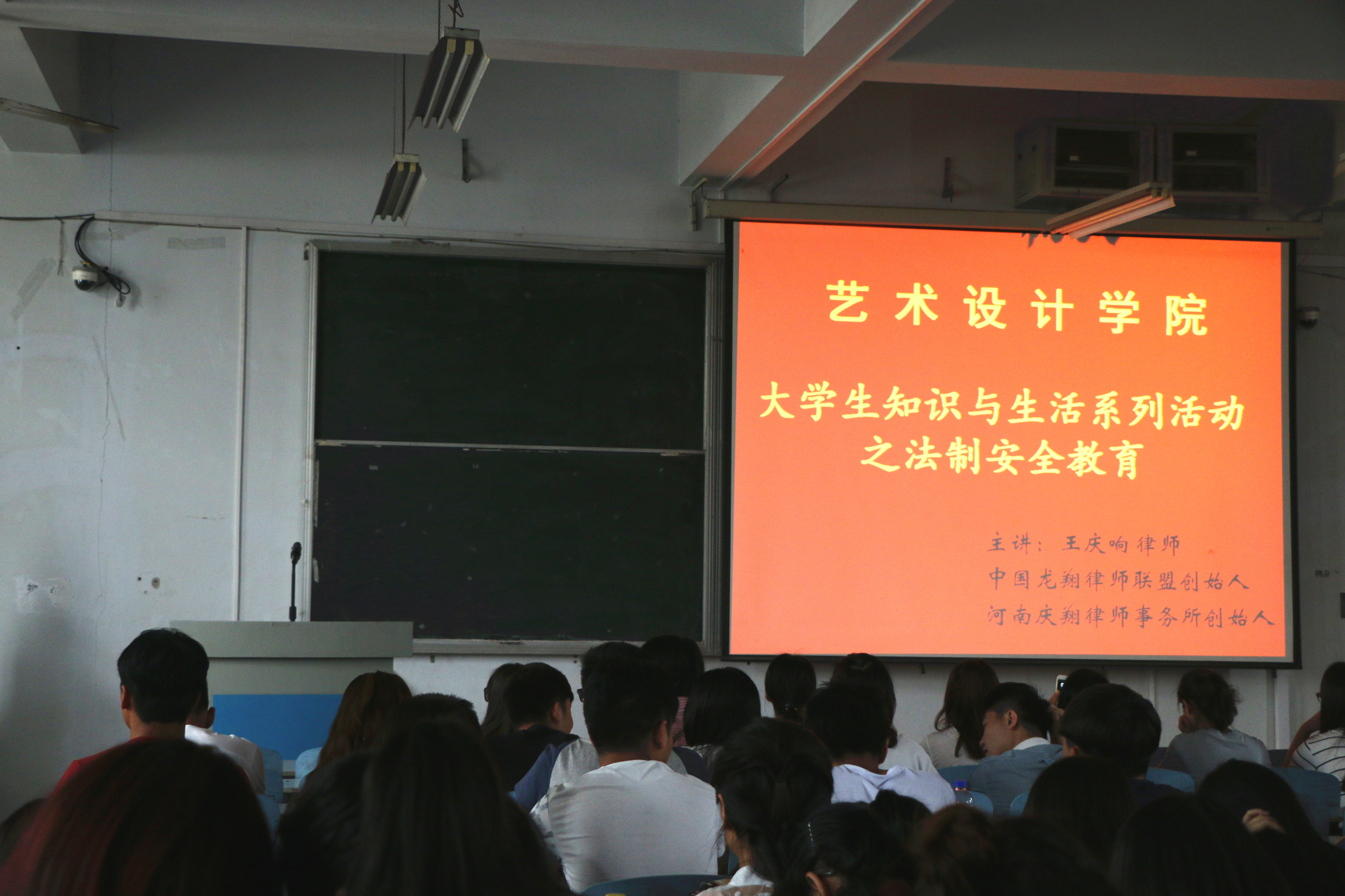 大学生正确的法制观念和法制意识,营造学院良好的法制教育环境和氛围,2016年5月12日下午,艺术设计学院在东风校区西五楼314教室举行了大学生知识与生活系列活动之“法制安全教育”活动。活动由辅导员霍庆媛老师主持,艺术设计学院近二百名学生聆听了讲座。