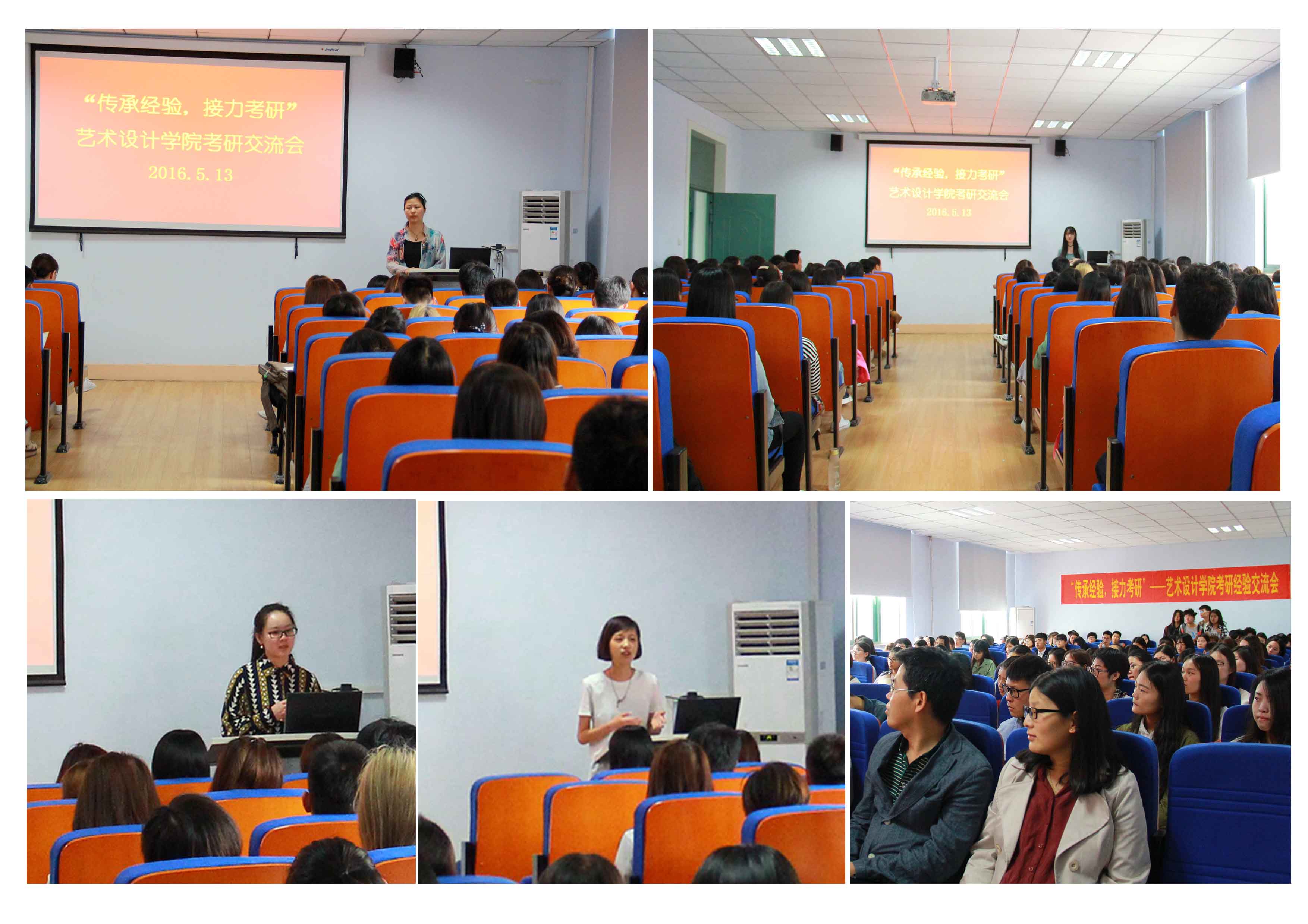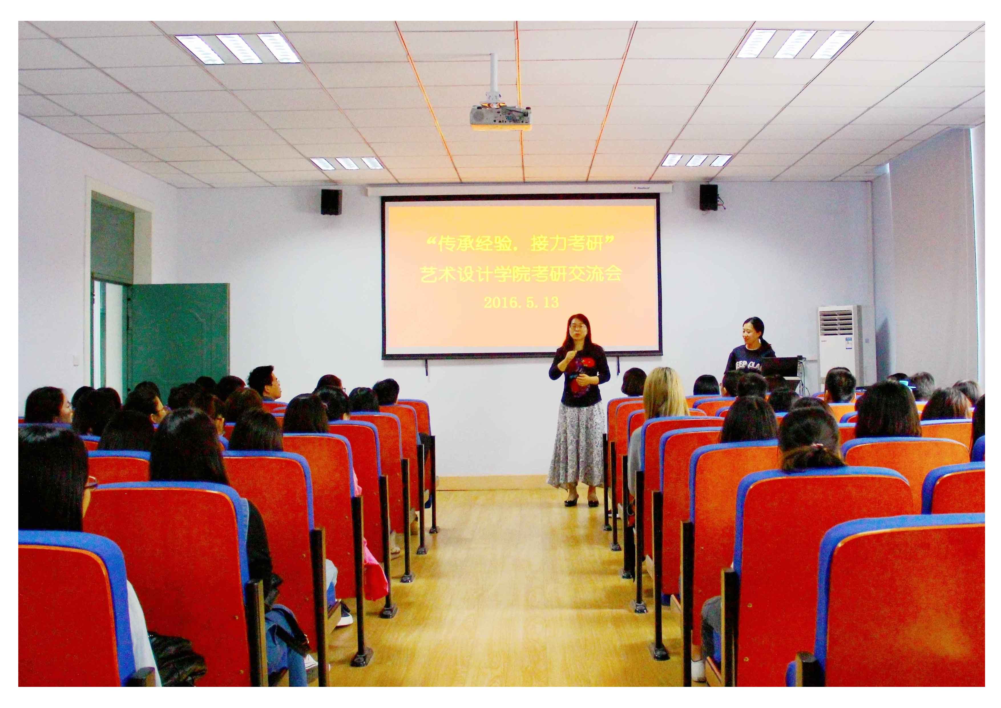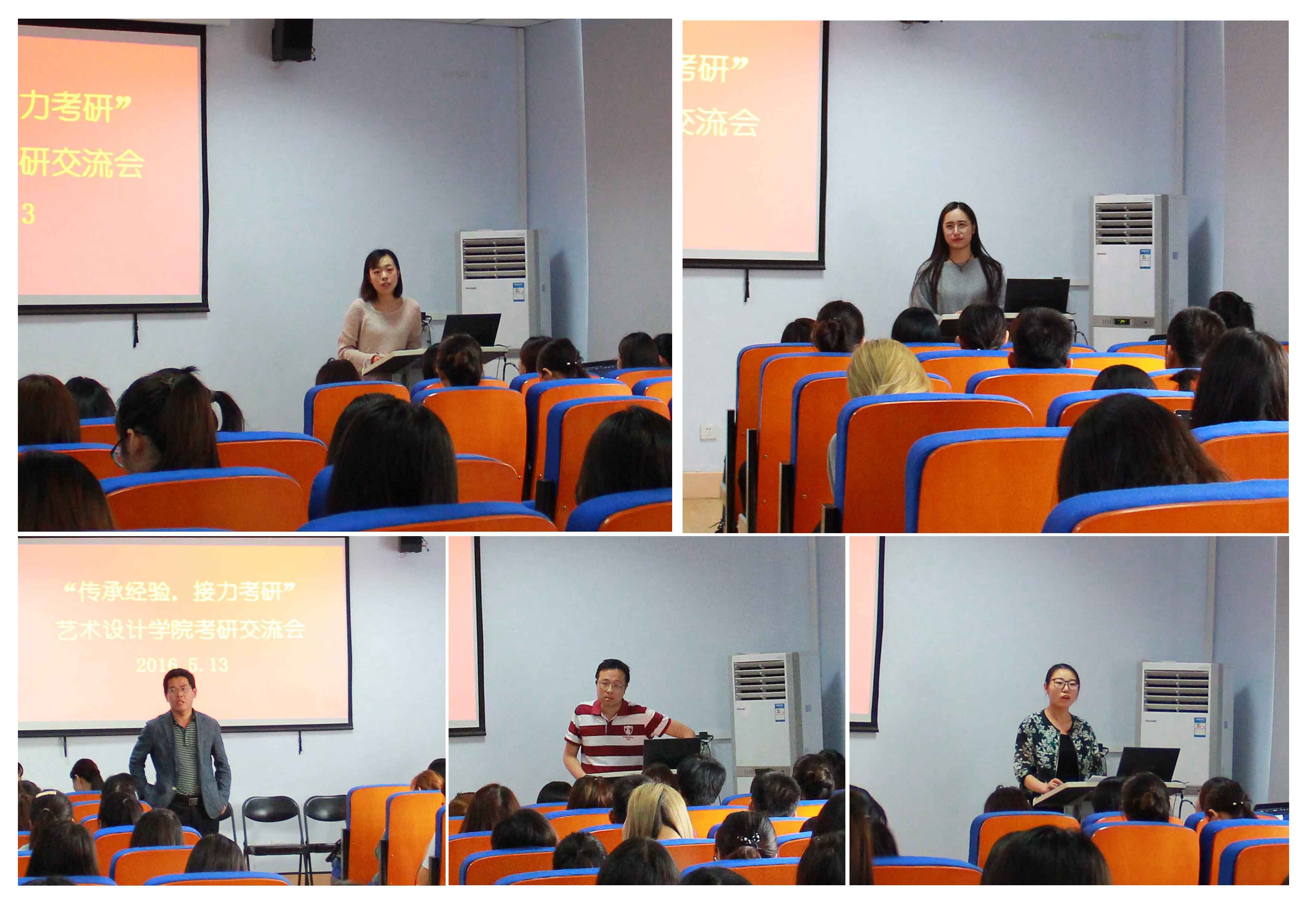 2016年5月13日上午,艺术设计学院在东四楼301报告厅举行了“传承经验,接力考研”经验交流会。学院党总支副书记张莉老师、分团委书记任红印老师、研究生管理科科长刘娟老师、研究生辅导员唐丹丹老师、研究生代表、2016届优秀考研学生代表以及近200名低年级学生参加此次活动。