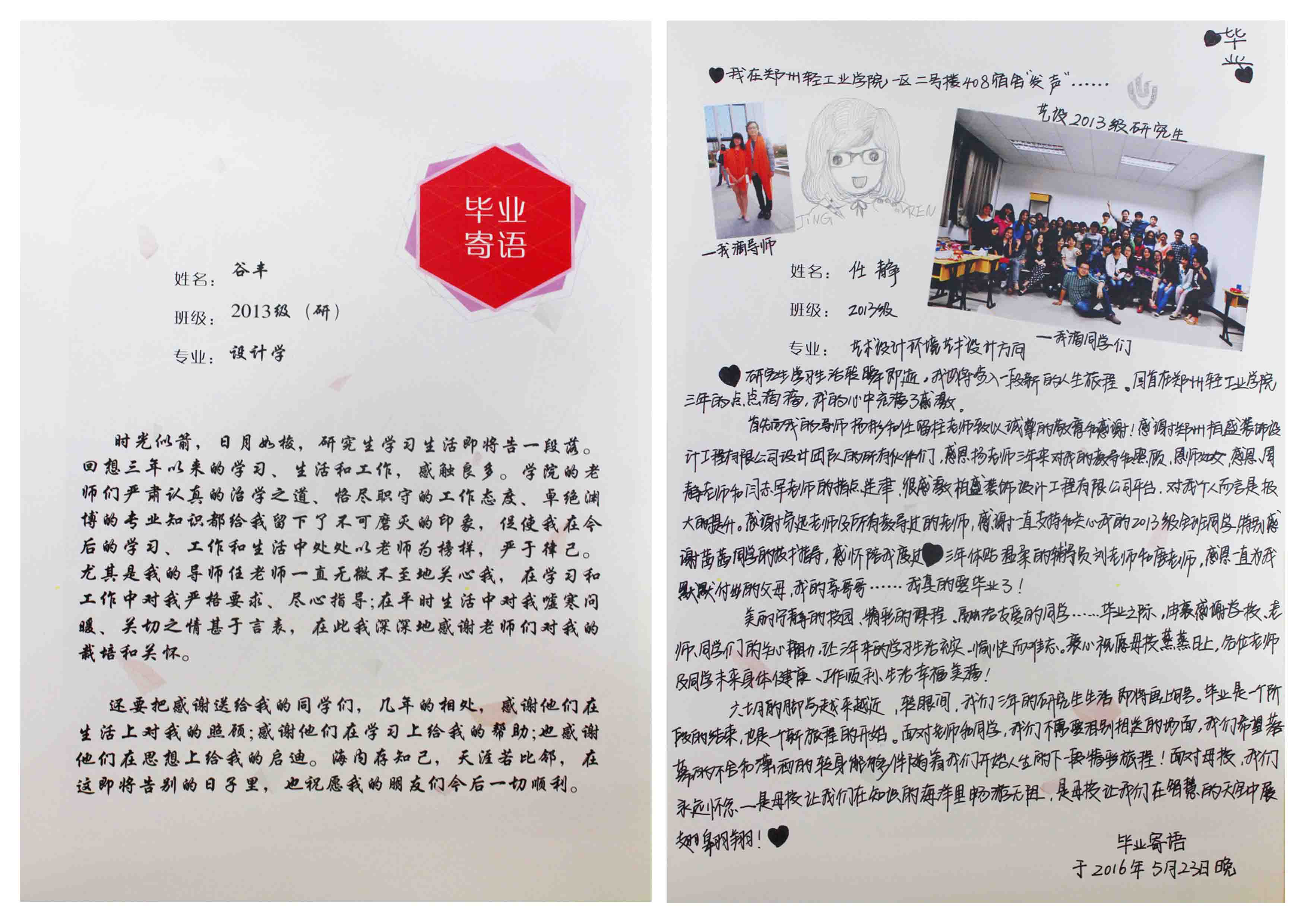 时光似箭,日月如梭,三年硕士生活转眼即逝,又是一年的毕业季,浓浓离别情,依依不舍心。五月下旬,艺术设计学院成功举行了2016届研究生关爱母校寄语活动,全体研三同学热情高涨地参加了此活动。