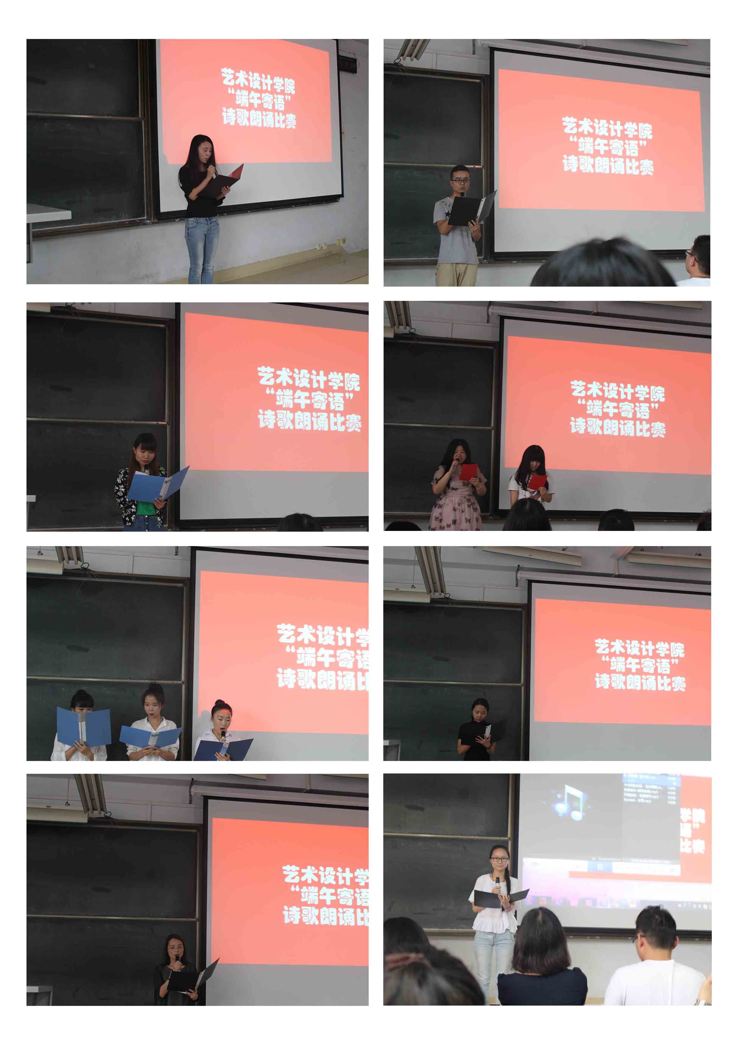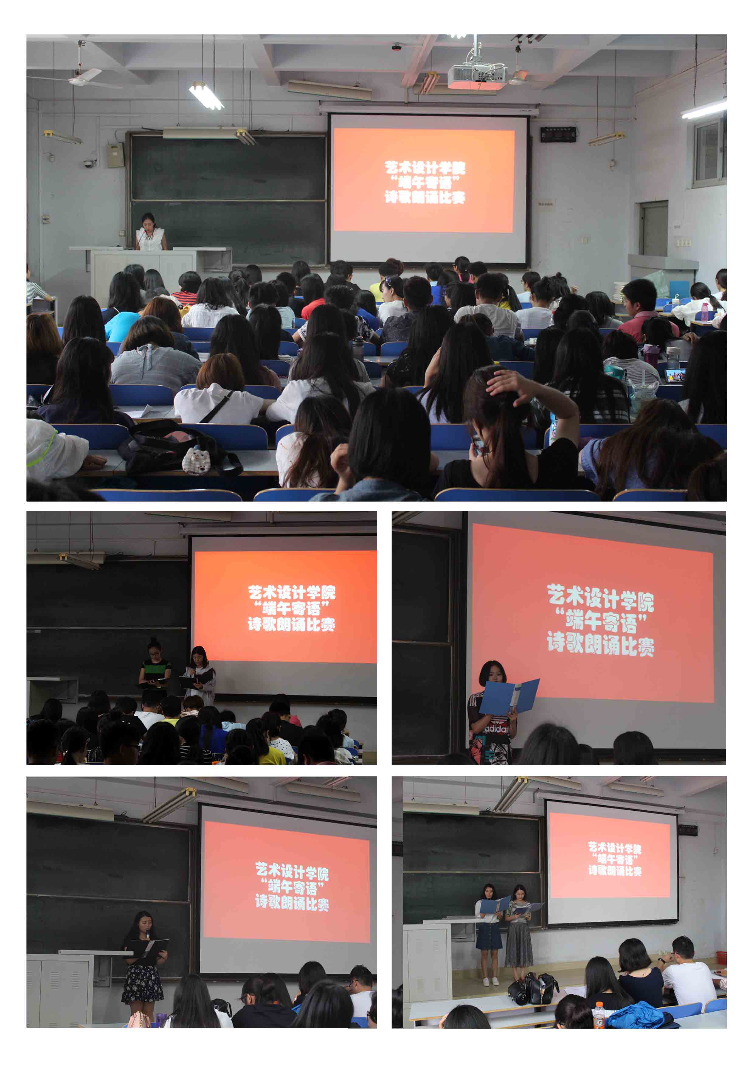 浓情端午,粽叶飘香,为了纪念流传了两千多年的民俗节日“端午节”,2016年6月2号下午,艺术设计学院在教三楼106教室举行了“端午寄语”诗歌朗诵大赛,研究生辅导员唐丹丹老师、校研究生会副主席杨向龙、学院本科学生会主席伊吉林、学院第一届研究生会主席任静、全体研一研二学生及本科生近150人参加了此次活动,本次活动的主持人是2014级研究生张巧靓同学。