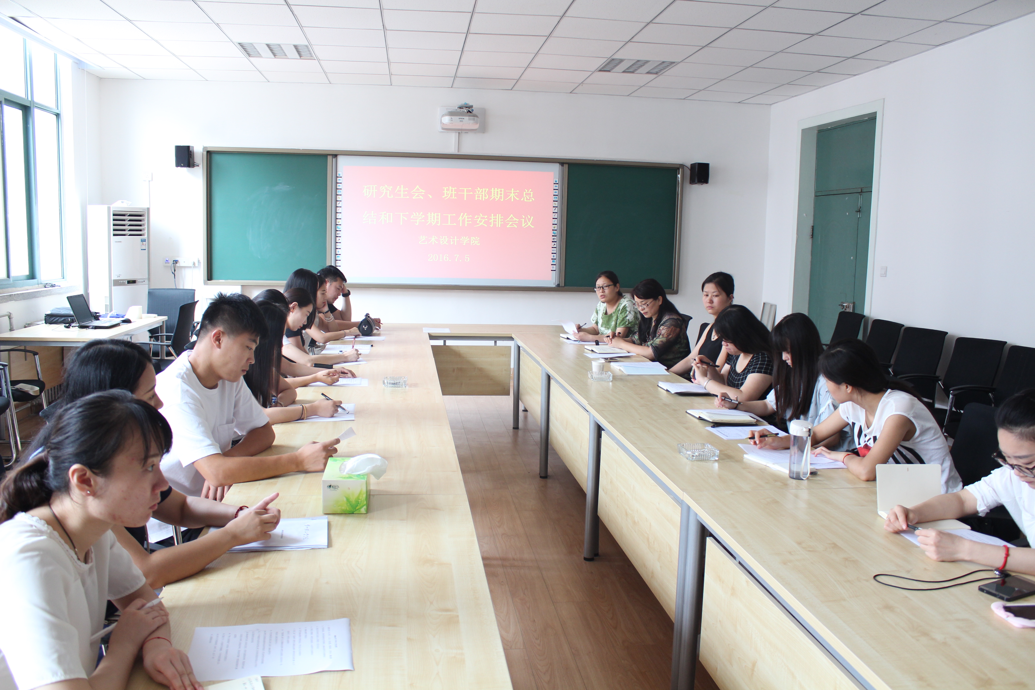 2016年7月5日上午,艺术设计学院在东四楼307召开研究生工作会议,对本学期工作进行总结,并对下学期工作进行安排部署,学院党总支副书记张莉老师、管理科科长刘娟老师、辅导员唐丹丹老师、研究生会全体成员以及各年级班干部参加此次会议。