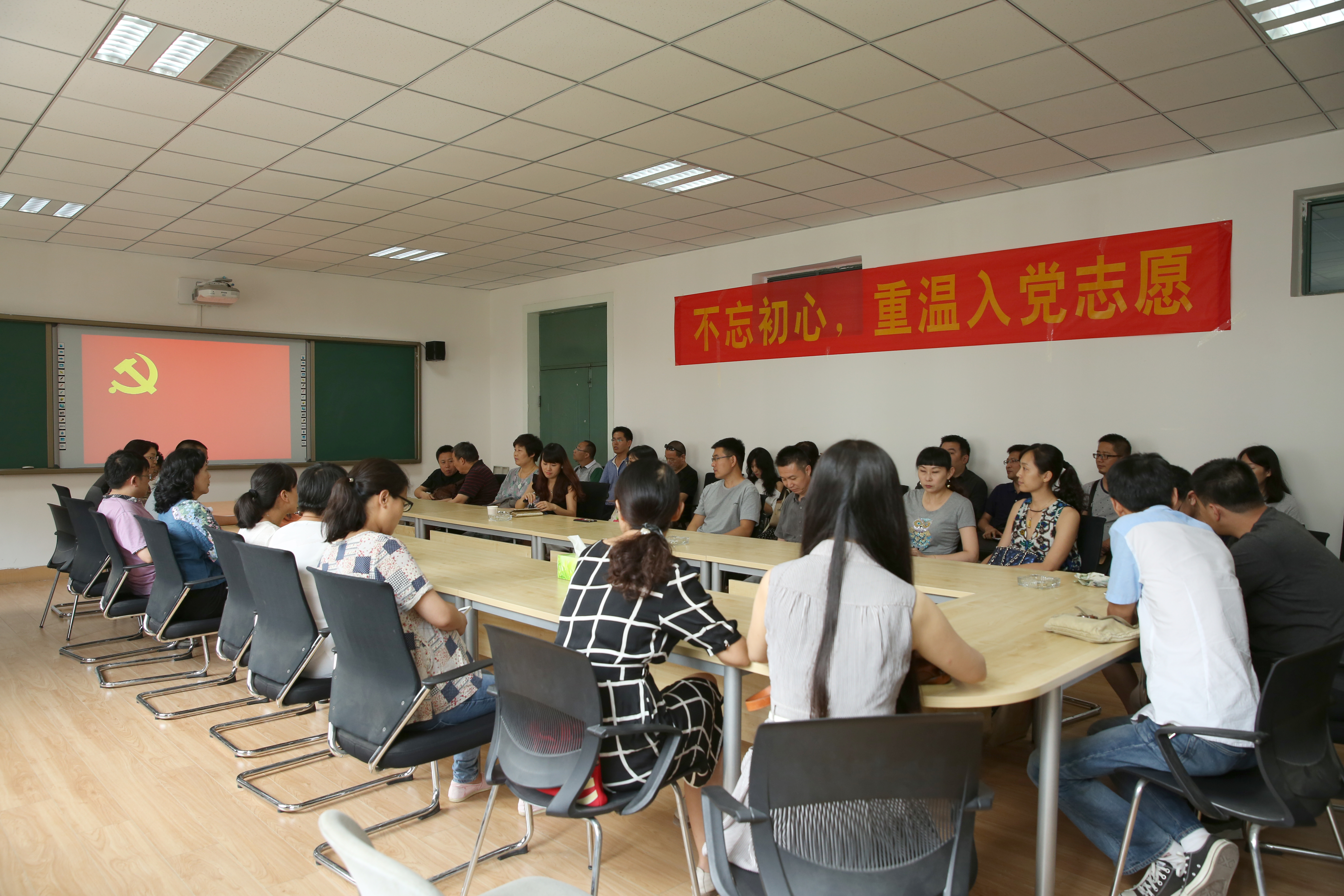 为进一步深化“两学一做”学习教育,7月7日下午,艺术设计学院教工两个支部在东四楼307开展了“不忘初心、重温入党志愿”主题教育活动。