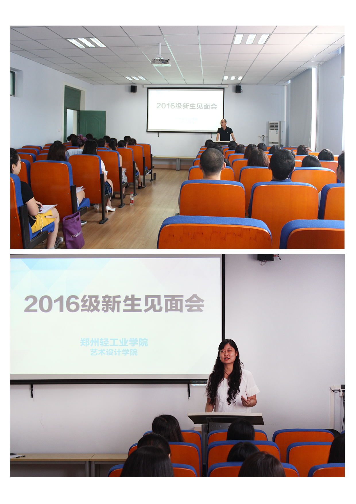 见面会由艺术设计学院研究生管理科刘娟科长主持。曹院长首先向16级研究生表示祝贺,并为大家简单介绍了艺术设计学院的教学环境,师资水平,同时通过生动幽默的例子使大家理解了研究生阶段学习的重要性和同学们作为研究生所需要作的调整,希望大家做一个有担当、有责任感的新世纪研究生。接着,魏院长向大家介绍了自己负责的工作范围,并为同学们带来了亲切的问候。